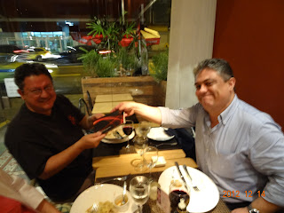 Finda a palestra de abertura, seguimos para um restaurante próximo ao Memorial, onde a organização do evento já havia fechado um pacote camarada para os participantes da Odisseia.  Optei pelo prato de carne, tomei quatro taças de Boscato Cabernet Sauvignon e ainda degustei uma sobremesa por menos de R$ 100,00.