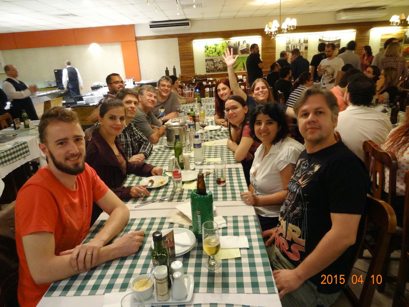 Ao fim da palestra de abertura, talvez em função da fome desesperadora (pelo menos no meu caso, que não havia almoçado e resistira bravamente aos poderes hipnóticos dos croissants da lanchonete), a plateia declinou da sessão de perguntas e, ato contínuo, aglomerou-se no hall dos elevadores para descer até o térreo.  Eu, Flávio, Gílson, Simone e Jerri Dias descemos pelas escadas e tomamos dois táxis no quarteirão seguinte, rumo à cantina Bella Italia, onde já abiamo mangiato molto bene na noite de abertura da Odisseia 2014.