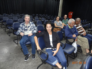 Solange me conduziu numa turnê rápida pelas instalações do SESC, com ênfase ao teatro gigantesco e belíssimo, ao auditório onde eu faria minha apresentação — e onde aproveitamos o ensejo para testar o arquivo da referida apresentação em PowerPoint — e à espaçosa área externa da instituição, com destaque para a piscina sob a forma de locomotiva a vapor.